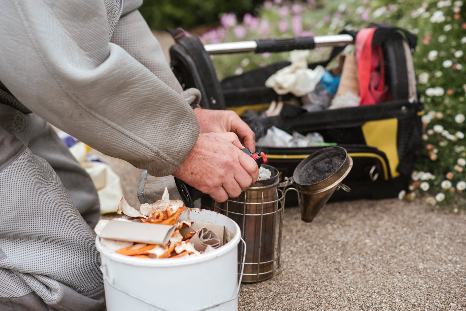 –Smoker to calm the bees when working with the hive. This tool will become your best friend in minimizing stings.