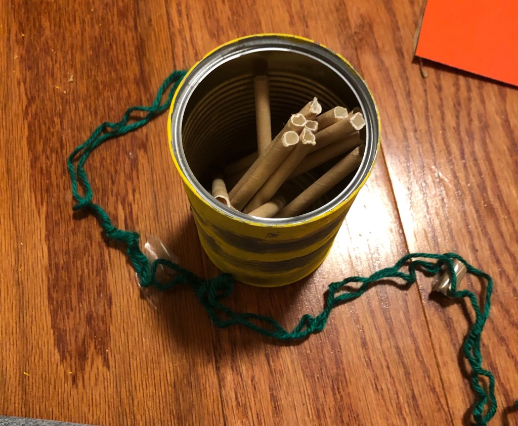 - Optional: Draw black stripes on the can with a marker or sharpie.