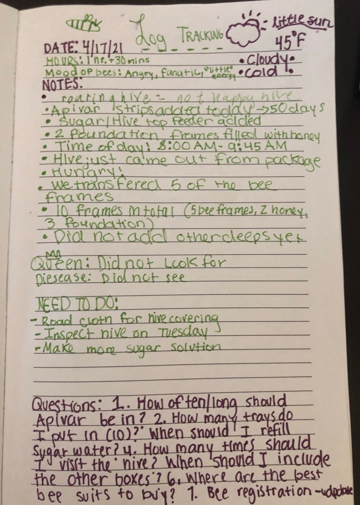 Today, although it was a cold, cloudy day, and the temperatures were in the 40 degree Fahrenheit zone, I was determined to go on this honeybee journey, and officially become a beekeeper. To help my local community, I established a honeybee hive in the town’s community garden, aiming to make more yield crops while informing young students and citizens about honeybee existence.