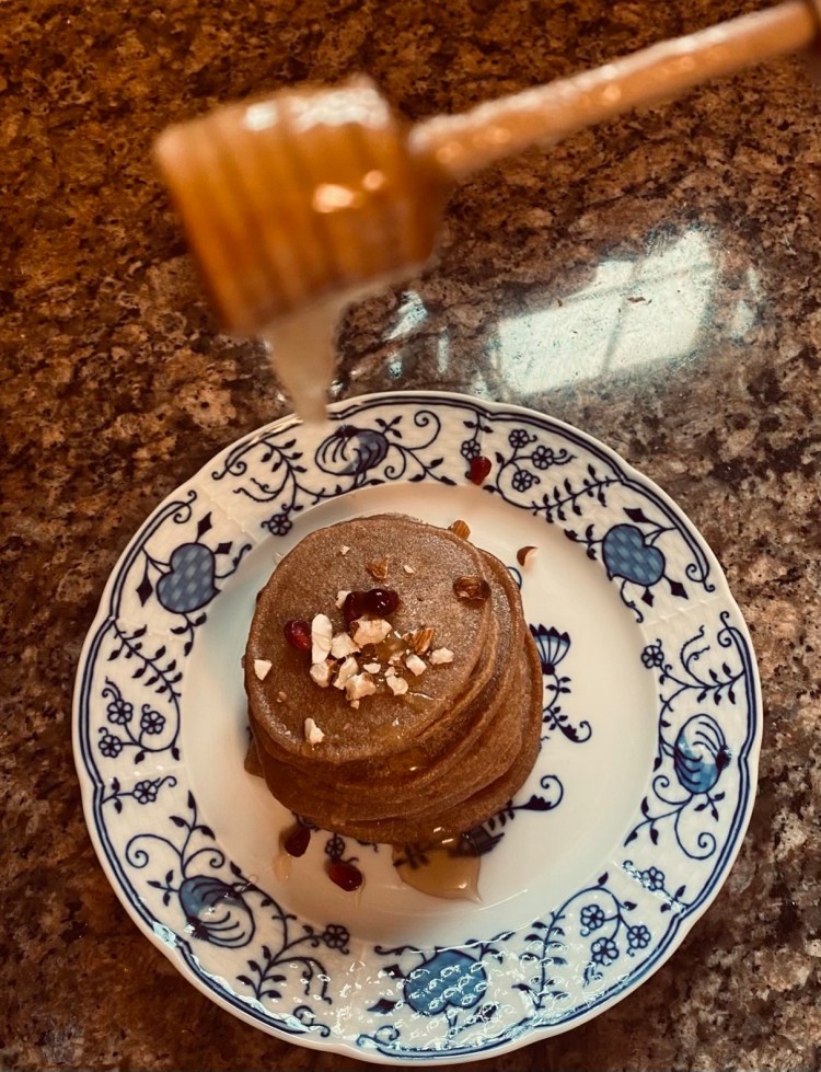-Serve either with drizzled honey, sesame seeds, pomegranate, berries, and crumbled feta cheese.