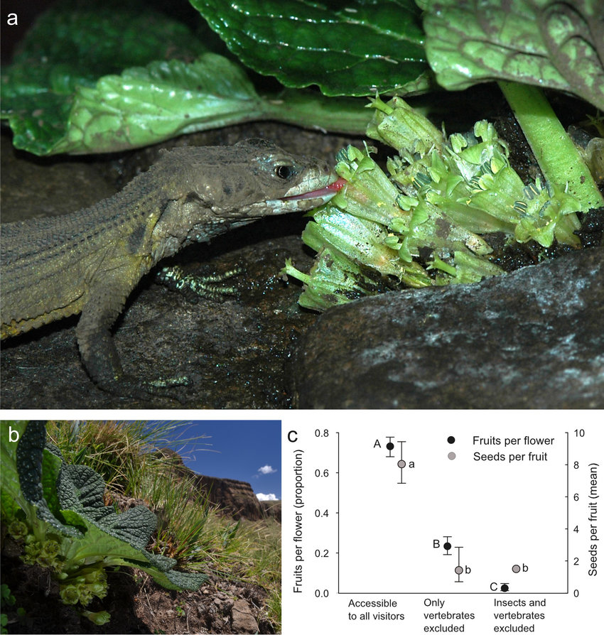 The scientists confirmed that the lizards were pollinators upon seeing them carrying pollen. When lizards were removed from plants in one experiment, the amount of seeds produced reduced substantially, by about 95%. Though lizards visit flowers, they almost exclusively do so on oceanic islands, and the significant involvement of lizards in G. capensis reproduction is nearly unparalleled.